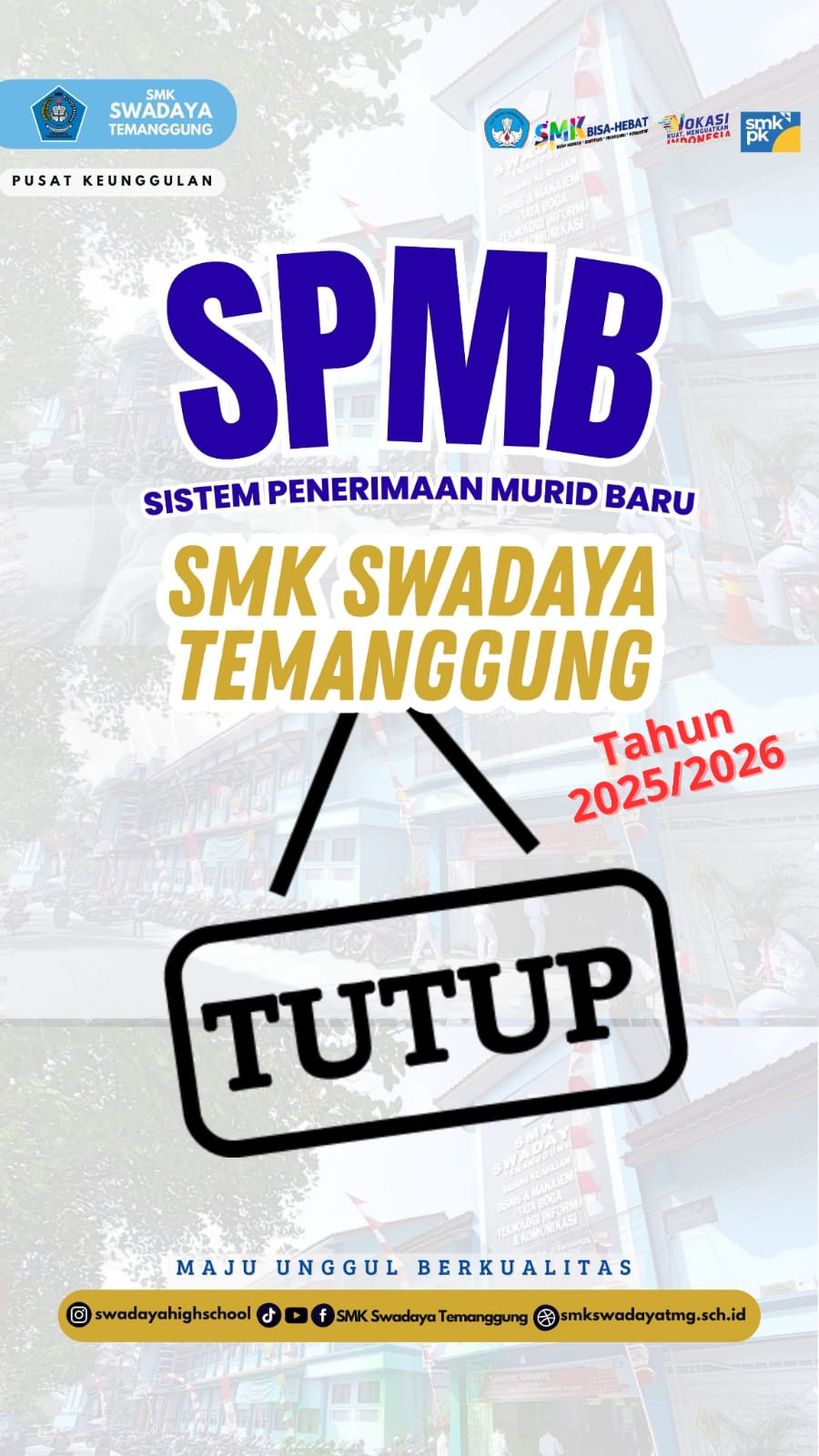 Pendaftaran SPMB SPMB Formulir Pendaftaran Calon Peserta Didik Baru Tahun Pelajaran 2026/2027 PPDB SMK SWADAYA 2025/2026NISNNama LengkapTempat LahirTanggal LahirJenis Kelamin- Piih -Laki-LakiPerempuanAgamaJurusan- Pilih -AKUNTANSIMANAJEMEN PERKANTORANBISNIS DIGITALKULINERTEKNIK KOMPUTER JARINGANPERHOTELANNomor WhatsAppAsal SMPAlamatRT / RWDusunDesaKecamatanKabupatenKode KuponDaftar Formulir Pendaftaran Calon Peserta Didik Baru Tahun Pelajaran 2025/2026